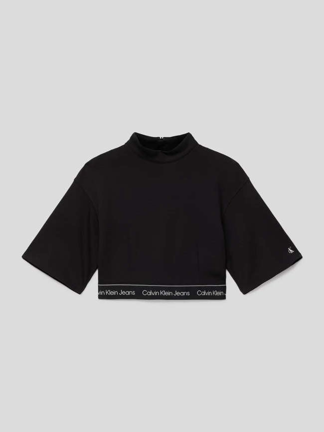 Das T-Shirt von Calvin Klein Jeans ist aus einem Viskose-Mix mit Stretch-Anteil gefertigt und gerade geschnitten. Es zeigt sich mit elastischem Logo-Bund und Nahtreißverschluss.