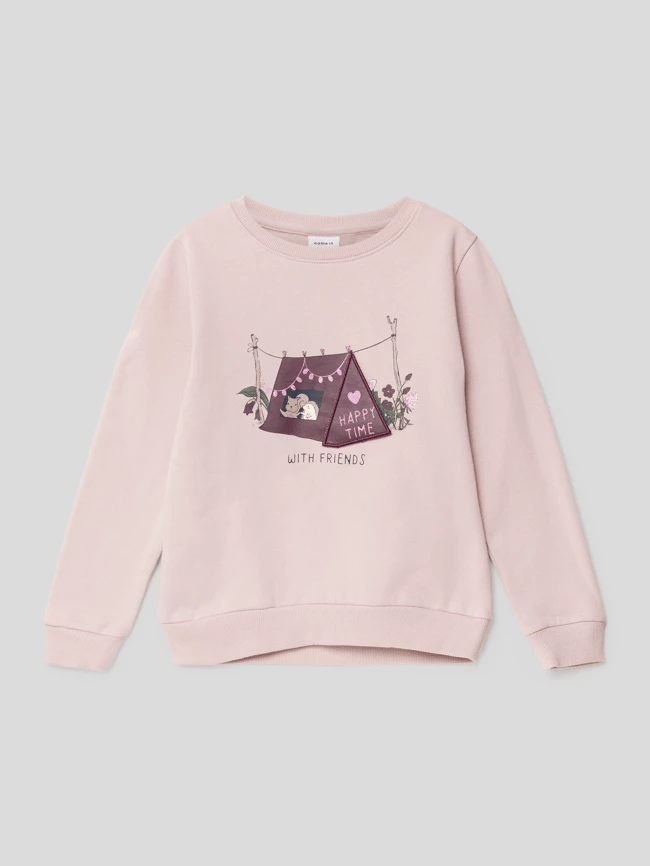 Das Sweatshirt von NAME IT ist aus reiner Baumwolle gefertigt und in lockerer Passform gehalten. Es zeigt sich im unifarbenen Design mit Statement-Print und gerippten Abschlüssen.