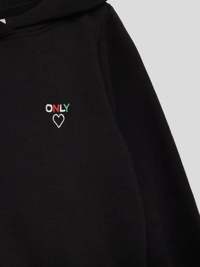 Der Hoodie von ONLY ist aus einer Baumwollmischung gefertigt und gerade geschnitten. Er zeigt sich im unifarbenen Design und kommt mit Label-Stitching sowie gerippten Bündchen.