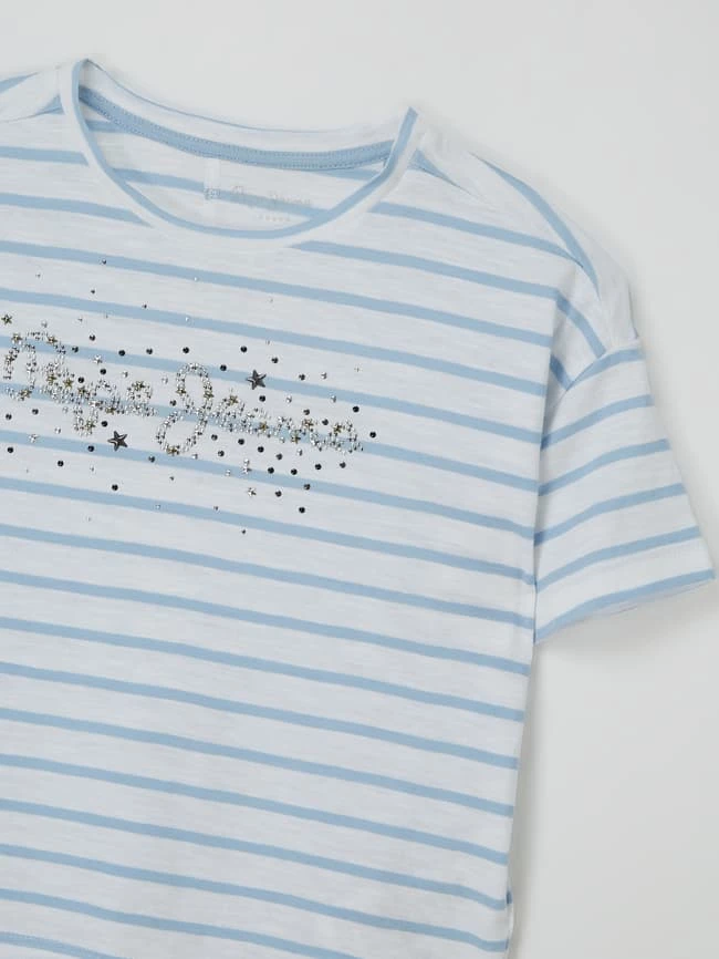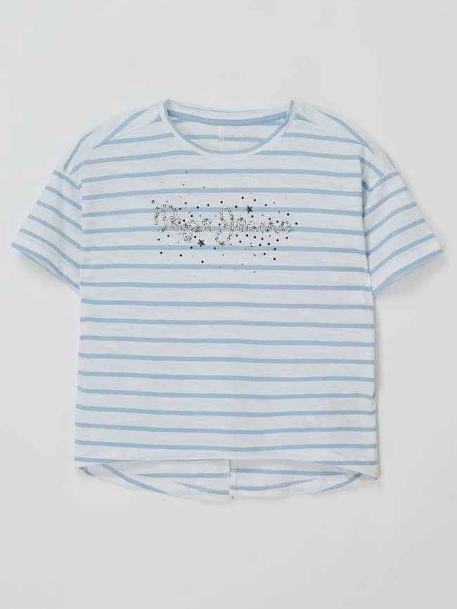 Das T-Shirt von Pepe Jeans ist aus Baumwolle gefertigt und gerade geschnitten. Es kommt mit Streifenmuster, Rundhalsausschnitt und Strasssteinen.