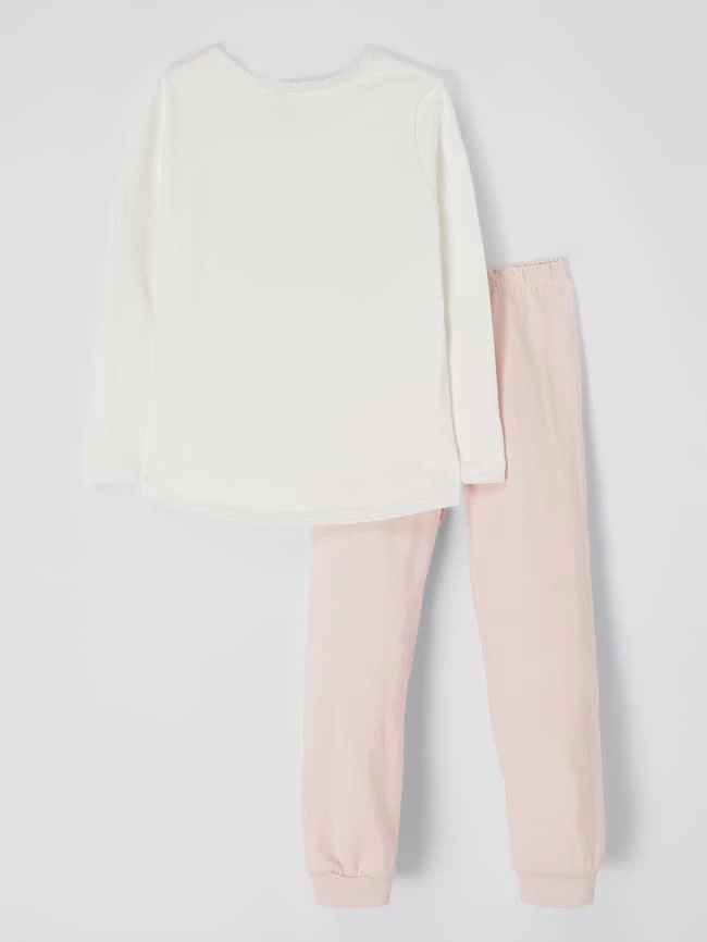 Der Pyjama von Sanetta ist aus reiner Baumwolle gefertigt und gerade geschnitten. Das Oberteil zeigt sich mit langen Ärmeln und Print. Die Hose kommt mit elastischem Bund.