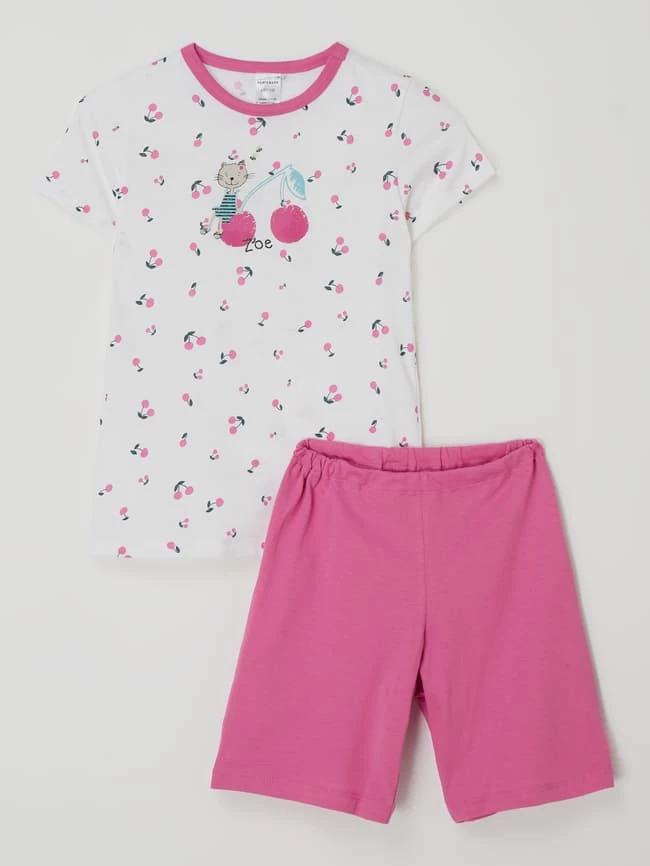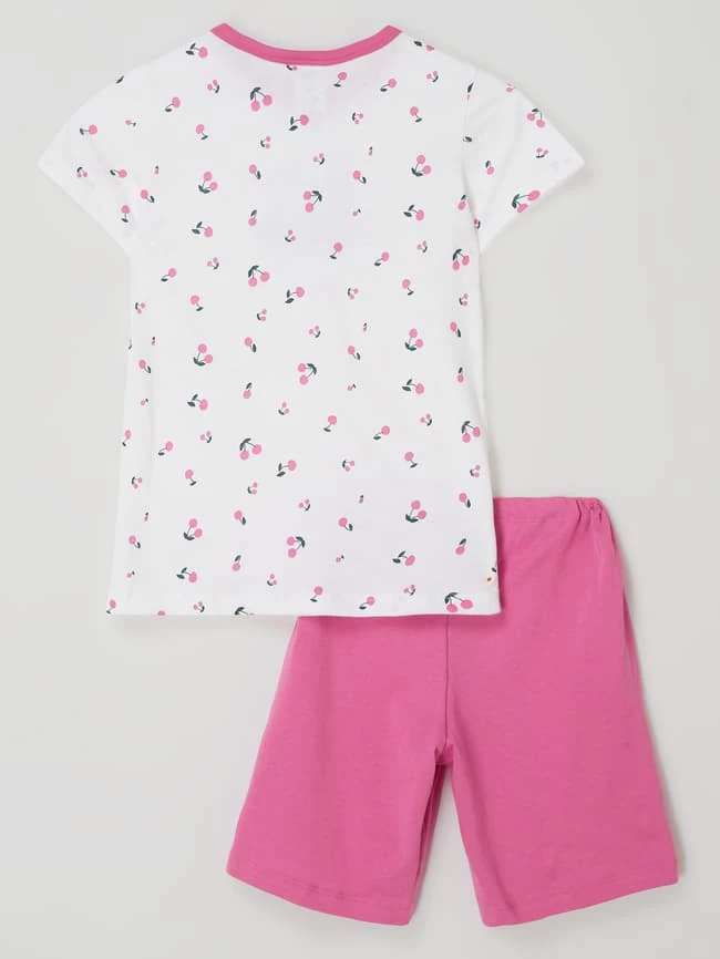 Der Pyjama von SCHIESSER ist aus reiner Baumwolle mit Bio-Anteil gefertigt und locker geschnitten. Das Oberteil zeigt sich mit Allover-Muster, Rundhalsausschnitt und kurzen Ärmeln. Die Shorts kommt mit elastischem Bund.
