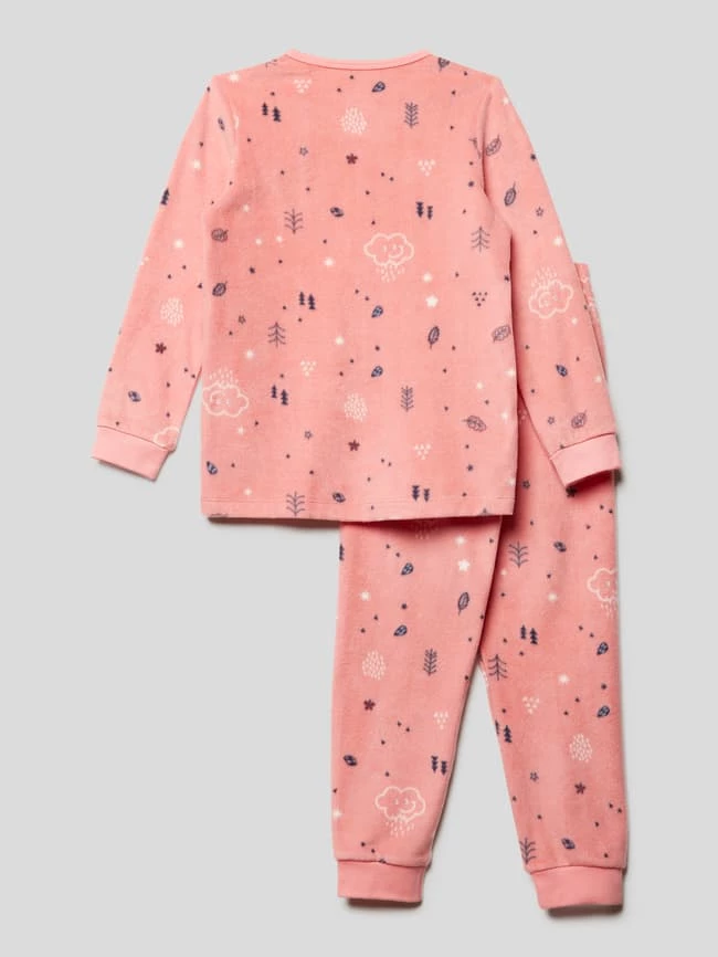 Der Pyjama von SCHIESSER ist aus einem strapazierfähigen Material gefertigt und in lockerer Passform gehalten. Er zeigt sich mit Allover-Muster, Oberteil mit Rundhalsausschnitt sowie Hose mit elastischem Bund.