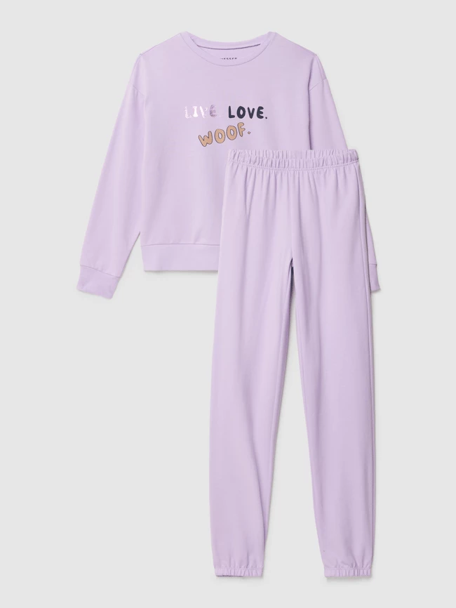 Der Pyjama von SCHIESSER ist aus reiner Bio-Baumwolle gefertigt und in lockerem Schnitt gehalten. Das Oberteil zeigt sich mit Motiv-Print und geripptem Rundhalsausschnitt. Die Hose kommt mit elastischem Bund.