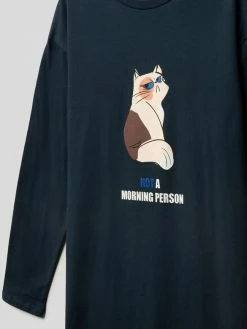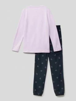 Der Pyjama von SCHIESSER ist aus reiner Baumwolle gefertigt und gerade geschnitten. Das Oberteil zeigt sich mit Motiv-Print. Die Hose kommt mit Allover-Muster und elastischem Bund.