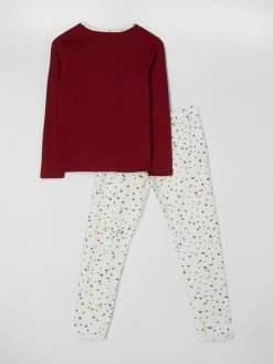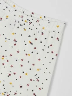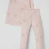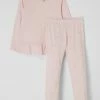 Der Pyjama von Skiny ist aus einem Baumwoll-Elasthan-Mix gefertigt und gerade geschnitten. Das Oberteil kommt mit Rundhalsausschnitt und Print in Metallic-Optik. Die Hose zeigt sich mit Allover-Muster und elastischem Bund.