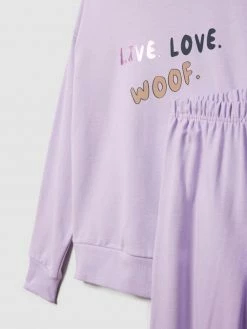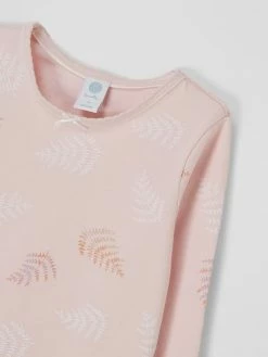 Der Pyjama von Skiny ist aus einem Baumwoll-Elasthan-Mix gefertigt und gerade geschnitten. Das Oberteil kommt mit Rundhalsausschnitt und Print in Metallic-Optik. Die Hose zeigt sich mit Allover-Muster und elastischem Bund.